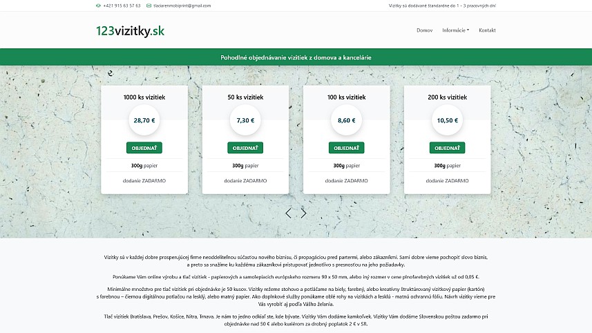Návrh dizajnu webstránky obdržíte už do 2 až 3 dní od objednávky a kompletná webstránka bude hotová do 7 až 14 dní od doručenia všetkých potrebných podkladov. Navyše u nás za dodatočné úpravy webstránky neplatíte, vykonáme ich bezplatne za vás. Navyše mesačný poplatok pokrýva nielen tvorbu a správu internetovej stránky, ale aj registráciu domény a hosting, čím sa vyhnete dodatočným nákladom.